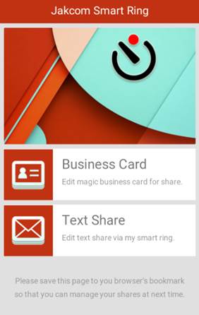 1. If phone has no NFC function , it can edit this Ring¡¯s NFC Module information, such as "Business Card ", " Graphic Message", and then share it to other phone which has NFC function.