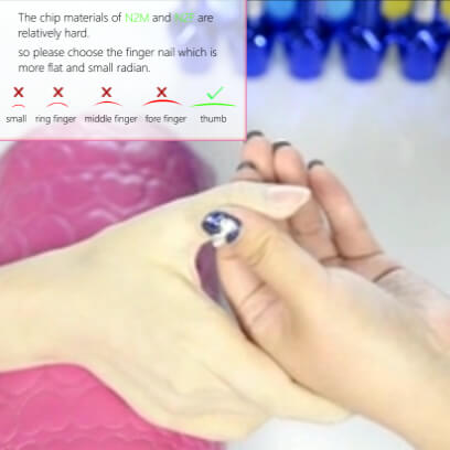 The chip materials of N2M are relatively hard, so please choose the finger nail which is more flat and small radian, such as thumb.